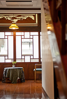大正10年に完成した木造3階建ての最も特徴的な部分は、現在談話室として使用されています。