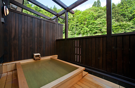 旅館から高台へと続く長い階段を上ると展望露天風呂があります。ここからは白銀の滝を望むことができます。